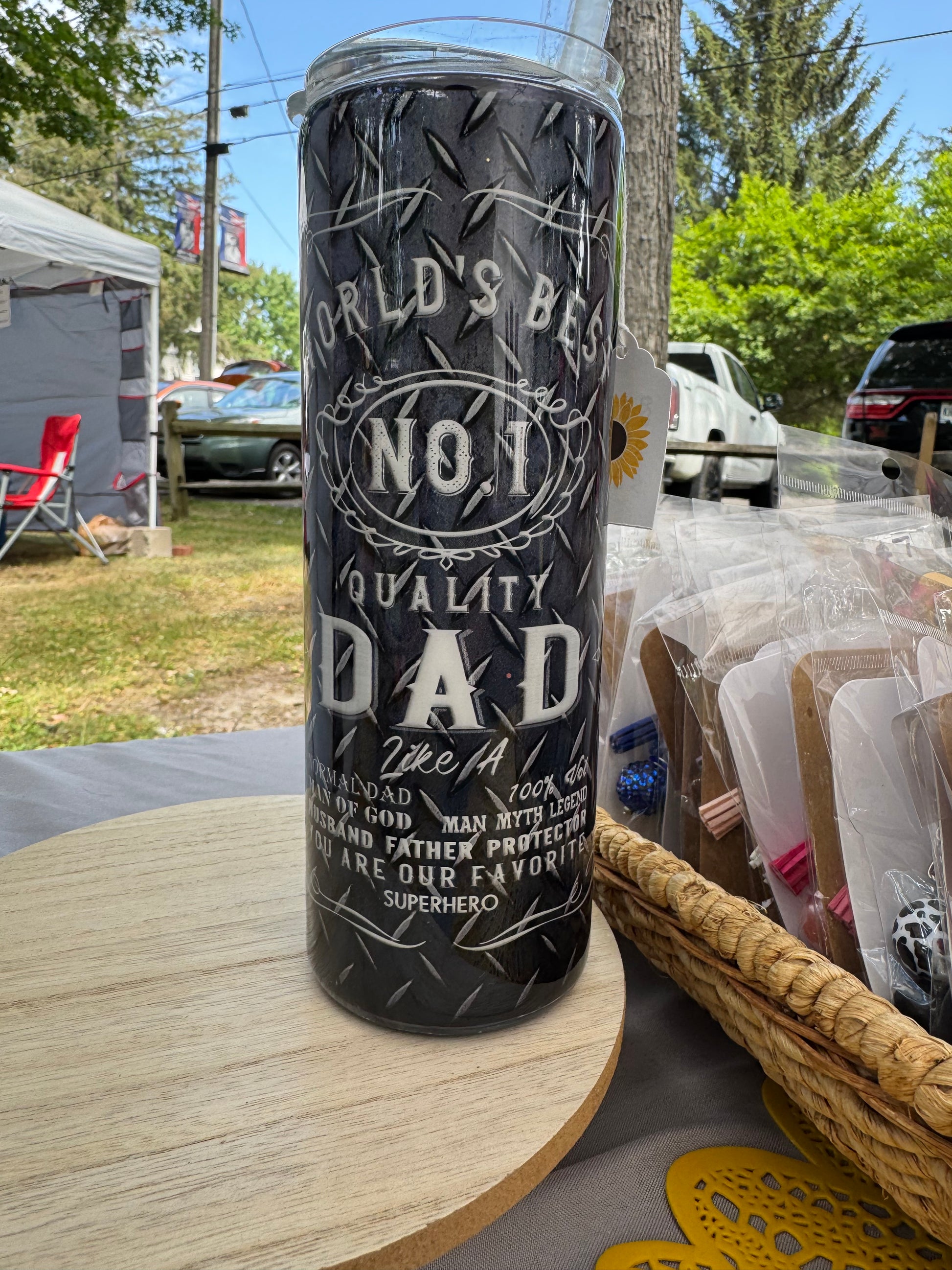 20oz stainless steel tumbler. Hand wash only.